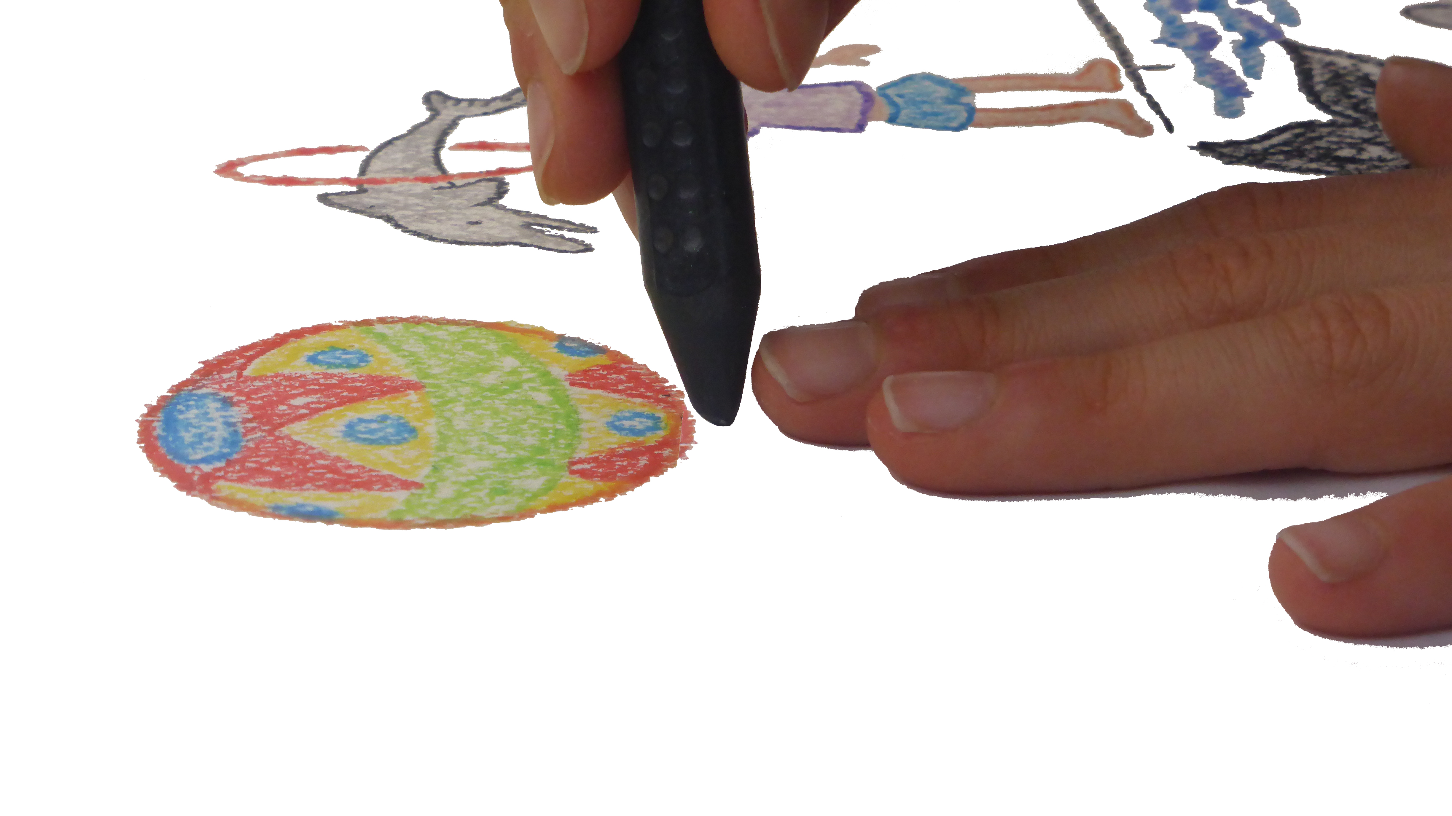 Einmal drumherum gezeichnet, wird die Hand zur Rakete, zum Vogel oder zur Giraffe.